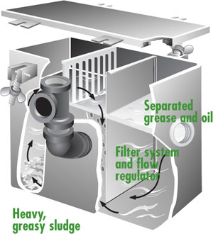 A Rockford Separator is designed for exceptionally high efficiency in retaining a wide variety of insoluble wastes. Maximum water travel with minimized turbulence through the filtering action of its screens prevents evacuation into drainage systems which may cause blocking, stoppages and backups.